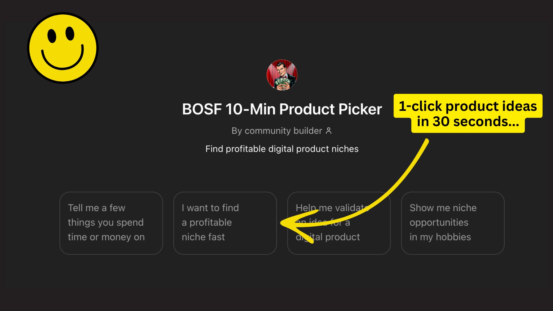 SHORT VERSION: You'll stop guessing which product to build and know within 10 minutes if your idea has real demand and if you're the right person to build it.